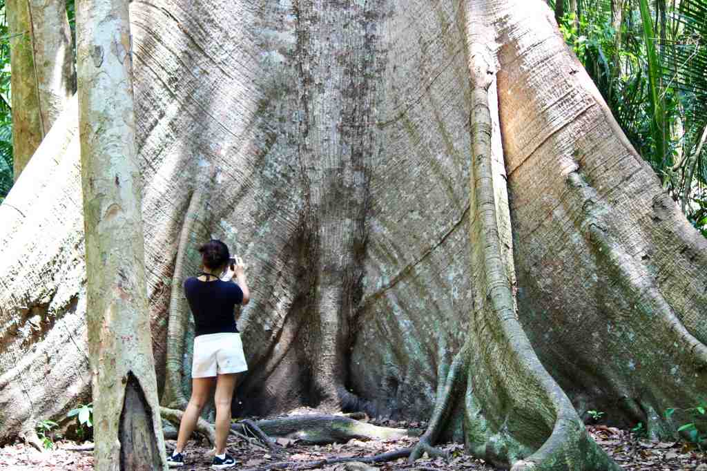Um dos pontos altos da Trilha do Piquiá é a parada diante de uma árvore samaúma centenária, considerada um verdadeiro monumento natural dentro da floresta amazônica. Essa árvore imponente chama a atenção não apenas pelo tamanho, mas também pela sua importância histórica, cultural e ecológica para a região. Com seu tronco largo e raízes profundas que se espalham pelo solo, ela é um exemplo vivo da resistência da floresta.