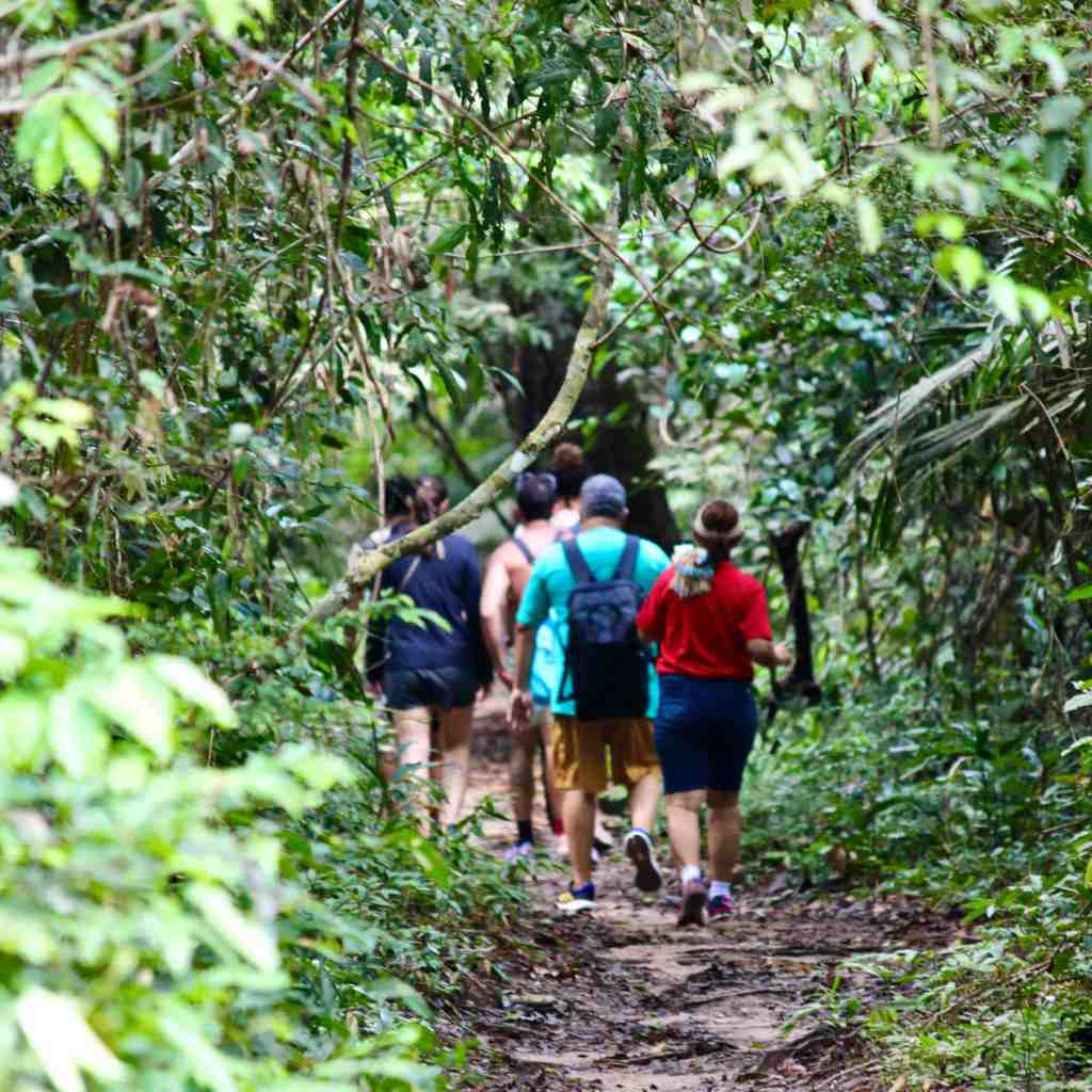 O trajeto é uma verdadeira imersão na Amazônia. Durante a caminhada, os visitantes passam por áreas de mata fechada, onde é possível ouvir o som dos pássaros, e, com sorte, avistar pequenos animais como macacos e preguiças. O guia local geralmente compartilha informações valiosas sobre as plantas, contando suas utilidades medicinais, alimentares e culturais.