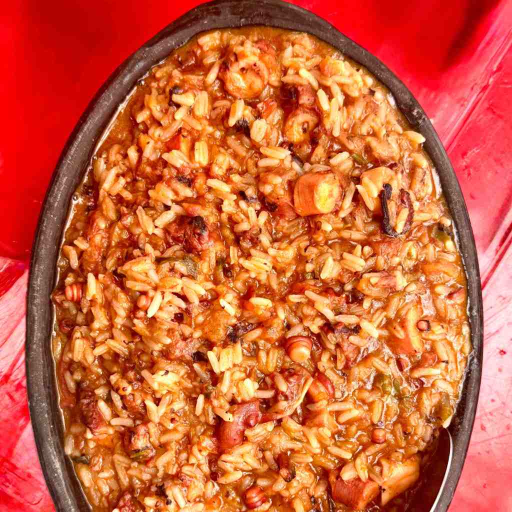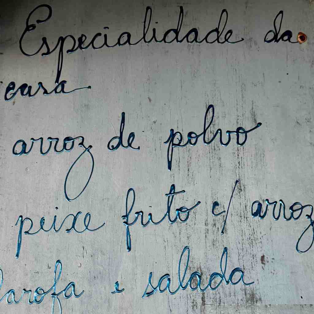 Barraca do Nel – Andamos pela praia mesmo, até chegar à Praia dos Pescadores. A Barraca do Nel é uma das queridinhas de Arraial d’Ajuda para quem busca aquele clima pé na areia com atendimento acolhedor e comida saborosa. O espaço combina simplicidade e boa energia, ideal para curtir o mar enquanto saboreia pratos incríveis. O destaque é sem sombra de dúvida o Arroz com Polvo, R$190. O polvo chega macio, no ponto perfeito, envolto em um arroz úmido e bem temperado, com aquele toque caseiro que só cozinha de praia sabe entregar. Acompanha um vinagrete um pouco apimentado, mas que cai perfeito com o prato. O prato serve de 2 a 3 pessoas, comendo bem. Indiscutível o melhor Arroz de Polvo que já comemos.